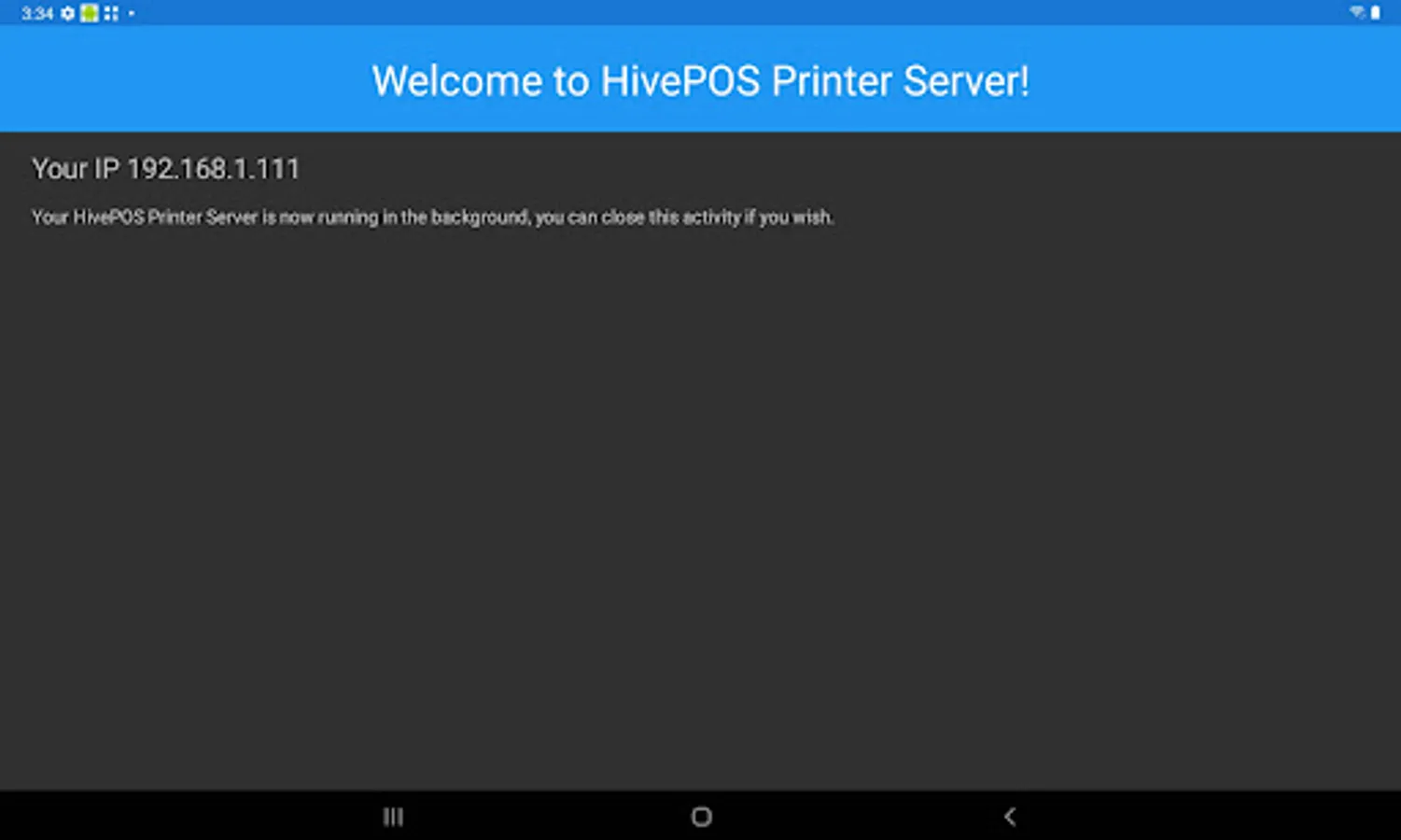 This app is required when running HivePOS on your Android devices to allow printing to your local printers.