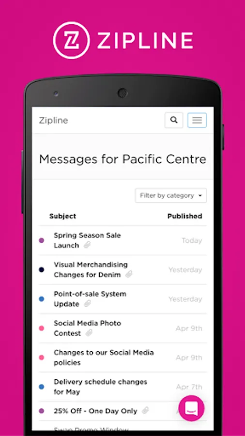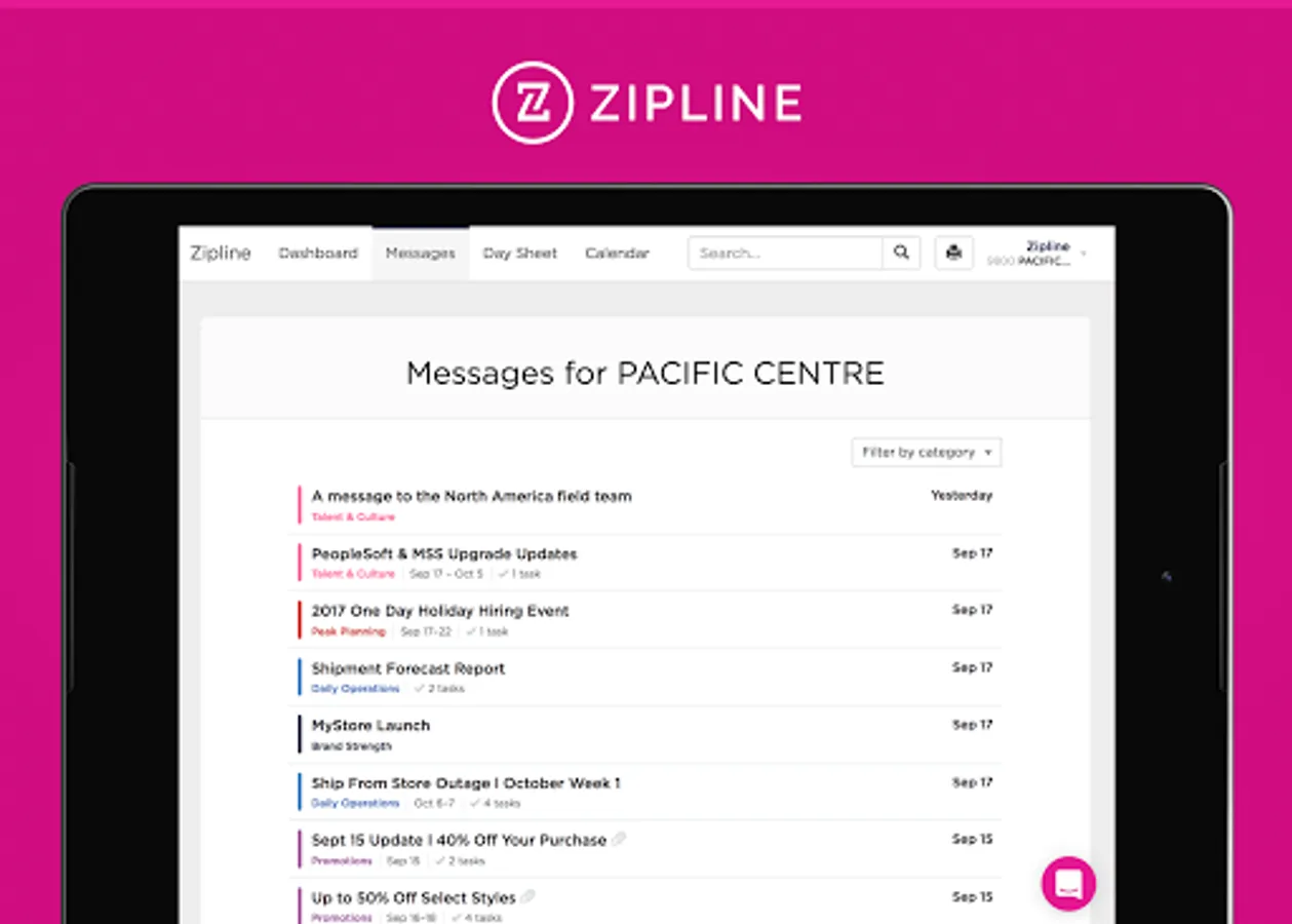 Zipline brings your store communication into one place so that you can stay on top of your business on the go. With a quick and easy way to see what needs to get done every day, and read all of the messages being sent from HQ, you'll have more time to focus on driving brand growth and making customers happy.