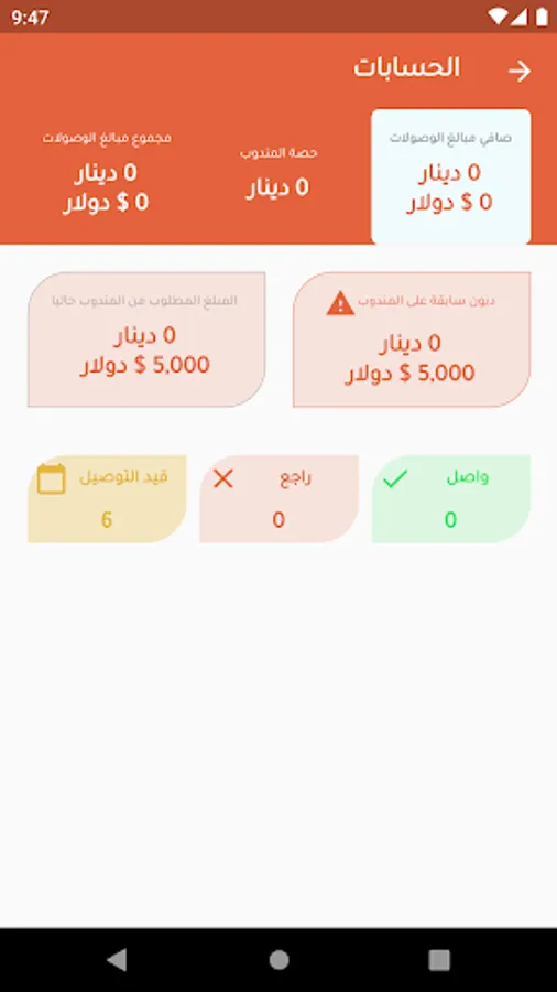 The application of the Retaj representative for delivery. The representative can update the status of shipments, follow them up, communicate with technical support, and search for all shipments easily through the application.