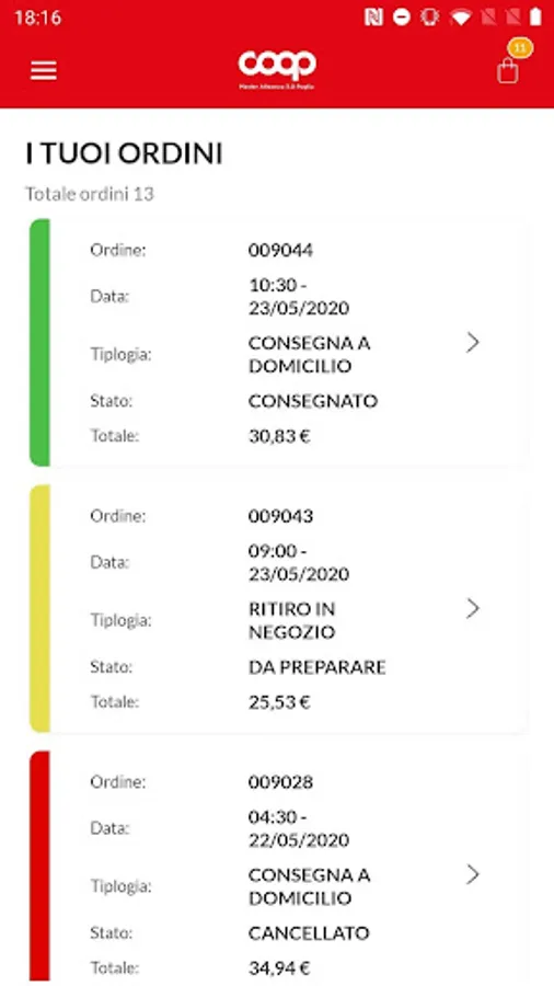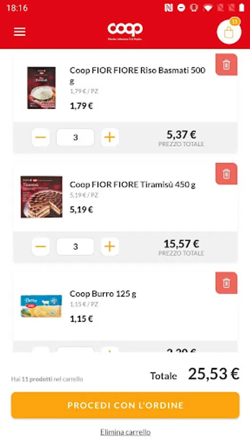 We offer in-store pick-up and home delivery, you can choose the day and time slot you prefer to come to the store you have chosen to collect the groceries or to have the groceries delivered directly to your home.