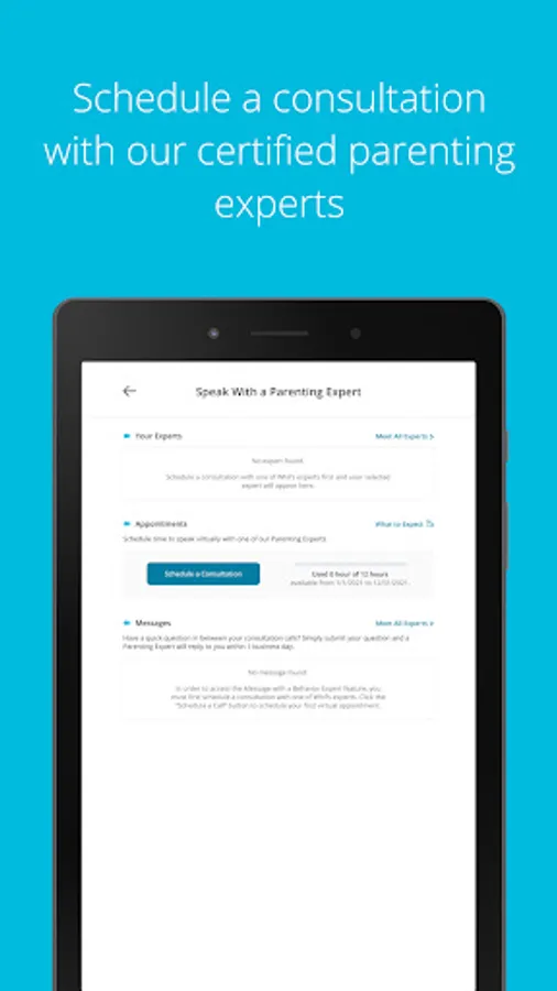 Working parents also have 1:1 access to live Board Certified Behavior Analysts (BCBAs). These graduate-level parenting experts are available by appointment, day or night, to help parents understand and act on their most complex challenges. This includes support for parents of children with learning and behavioral disabilities, such as autism, ADHD, and Down syndrome.
