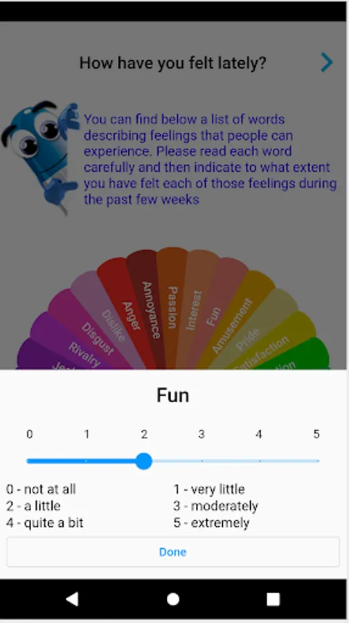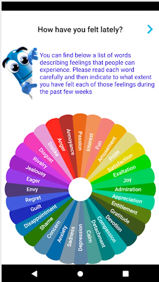 *** You will start by checking your mood during the past couple of weeks by filling a questionnaire and you will instantly get a report with the levels of your feelings (e.g., positive/negative, functional/dysfunctional). Afterwards, the App will ask you about your current mood and thoughts. Based on your ratings, you will get a “psychological pill prescription”. In the end, you can rate your mood again and check if the “psychological pill” has helped you. You can also print your “psychological prescription”, set reminders based on your personalized “psychological prescription”, and/or check the history of your “psychological pills prescriptions”.