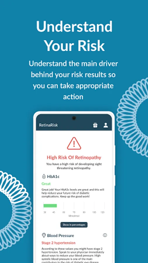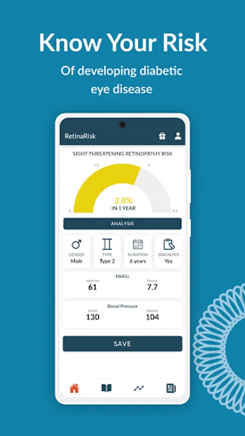 The clinically validated algorithm allows users to assess their individualized risk of developing sight-threatening eye disease by inserting their risk profile (type and duration of diabetes, gender, existing retinopathy, HbA1c and blood pressure). The app enables users to analyze their risk results to learn about the key risk factors impacting their individualized results allowing them take mitigation actions to lower the risk. Find out whether you are in high or low risk of developing sight-threatening diabetic retinopathy. Find out what you should do to lower your risk and achieve target levels