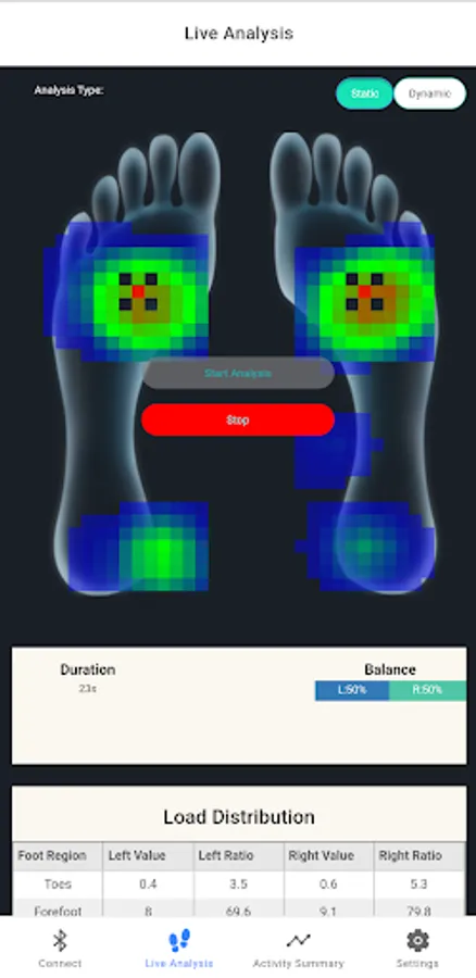By connecting our Feet SX insoles via Bluetooth you can perform standing posture analysis as well as dynamic gait analysis.