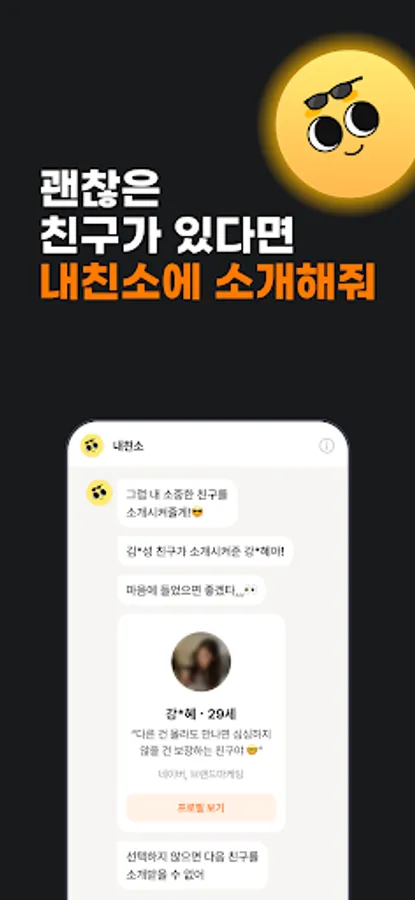 This app is committed to monitoring for youth protection by prohibiting the following actions within the app in accordance with the 'recommendation to strengthen youth protection activities' of the National Guard. In addition, we will monitor illegal and harmful content from being distributed, and inform you that if found, the member/post may be blocked without notice. This app is not intended for prostitution, and complies with the Youth Protection Act, but it may contain content that is harmful to young people, so the user's attention is required. A person who mediates, solicits, induces, or coerces prostitution, including children and adolescents, or a person who engages in prostitution is subject to criminal punishment. Posts that induce unwholesome encounters by comparing obscene or suggestive profile pictures and genitals and sexual acts are prohibited from distribution on this service. Illegal acts that violate current laws, such as other narcotics, medicines, and long-term transactions, are prohibited. If there is an illegal transaction solicitation, report it to naechinso@gmail.com, and in case of emergency, call the National Police Agency (112), Children/Women/Disabled Police Support Center Safety Dream (117), Women’s Emergency Call (1366), and other related sexual violence protection centers ( You can get help from http://www.sexoffender.go.kr/).