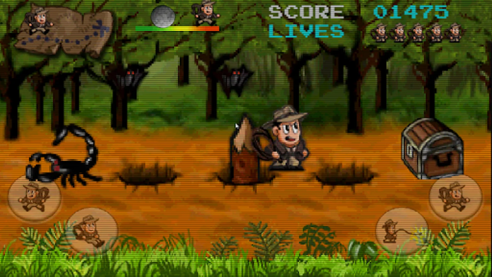 Retro Pitfall Challenge is a vintage game, like the classic arcades you played when you were a child. Avoid all the traps and pitfalls to get the treasures:
