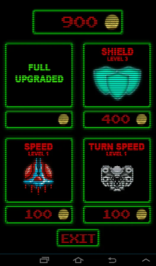 - Each time you play, you get gold which can be spent to improve your ship (fire, speed, turn, shields)