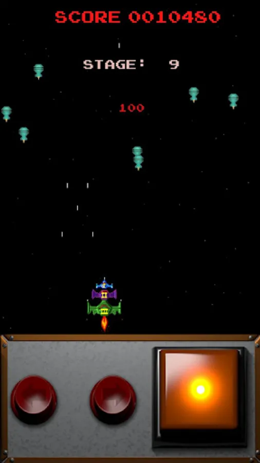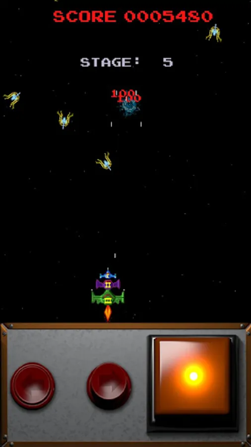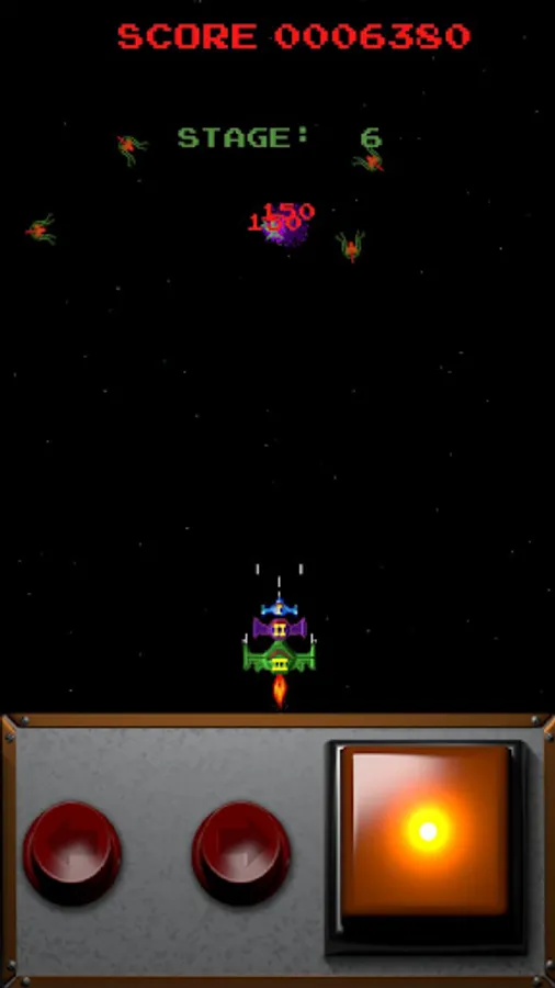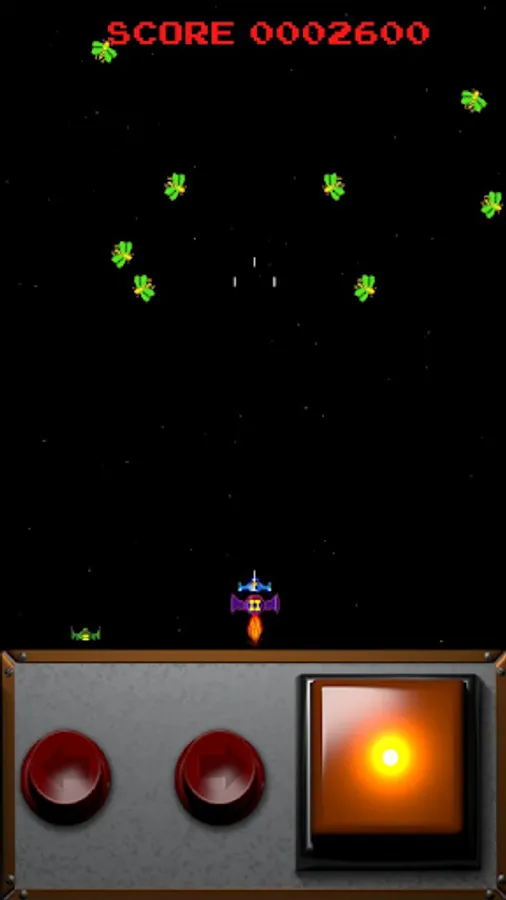Assemble your ships and fight against space aliens in this classic arcade game with pixelated graphics.