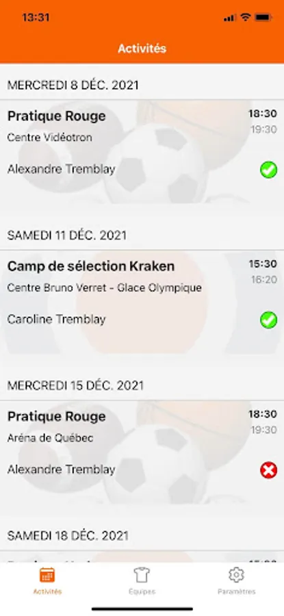The Retroaction application allows members of a sports association or organization to consult the schedule and indicate their presence or absence for the various activities.