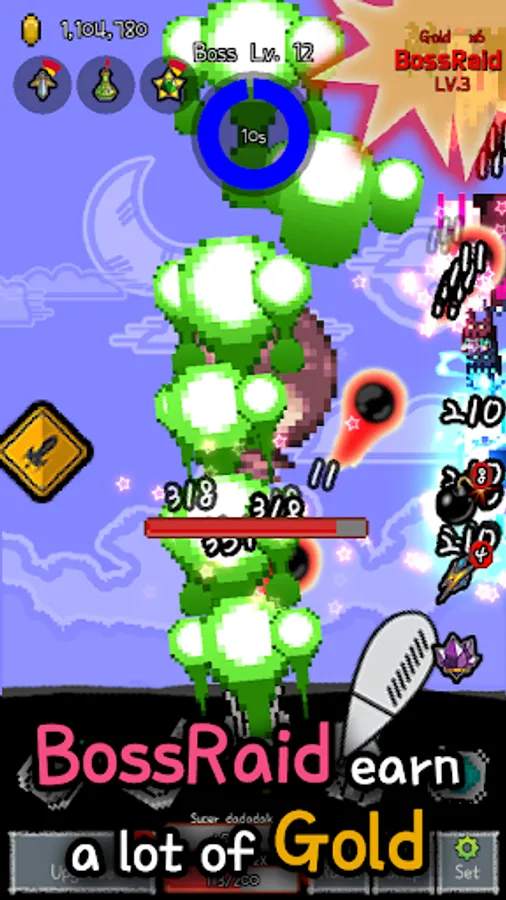 When boss monsters are defeated, the boss raid mode is activated. When the boss is defeated continuously, the level of the boss raid mode increases, and the amount of gold earned also increases!