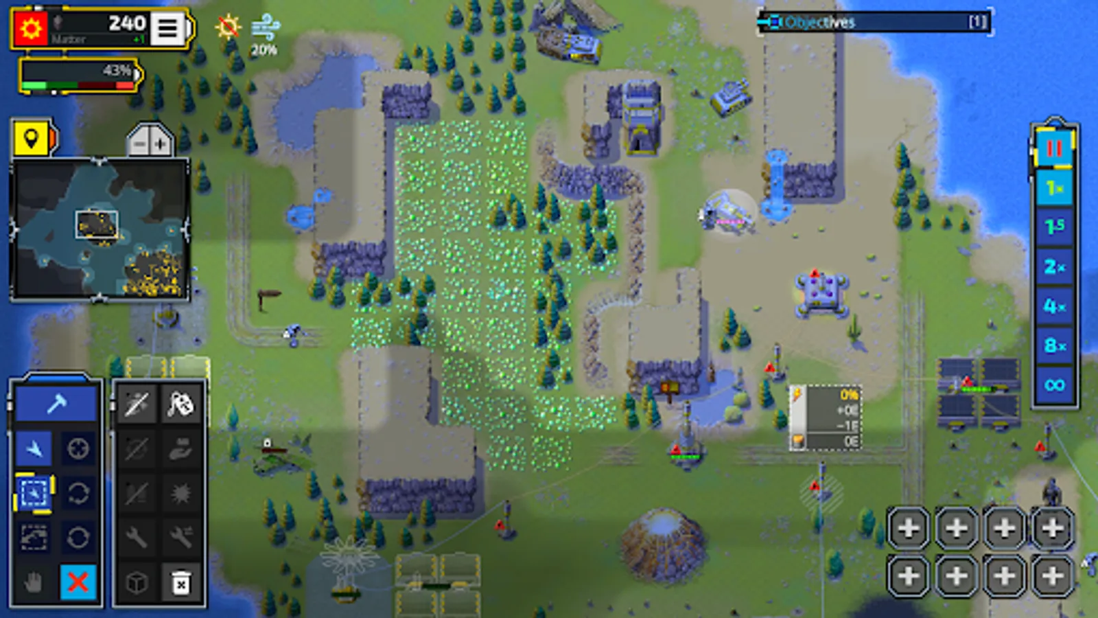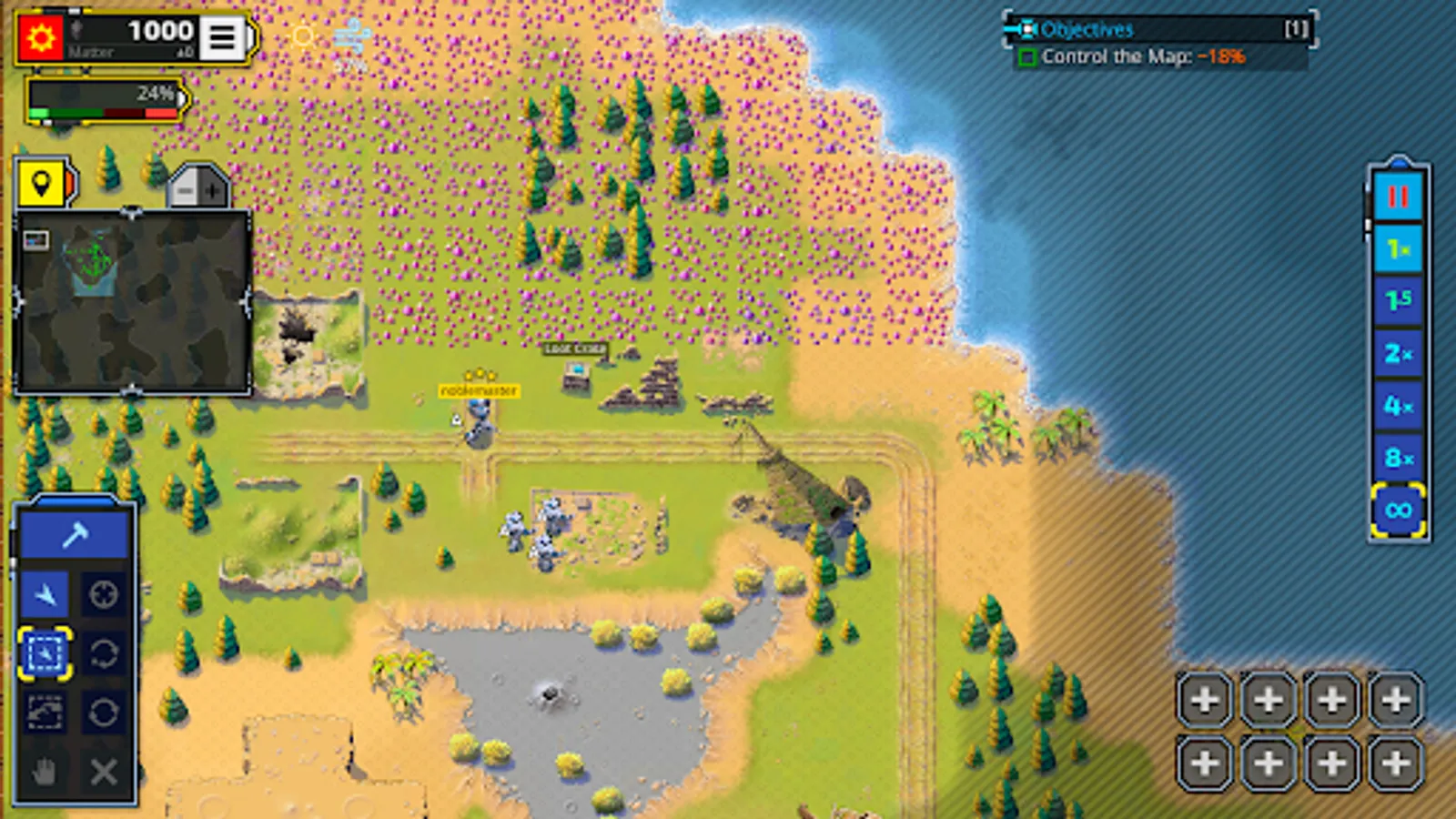 As opposed to other real-time strategy game, Retro Commander tries to focus on both, a fun single player and a thrilling multiplayer experience. The game strives to be easy to learn with a modern user interface. Single player comes with skirmish matches against the AI as well as a comic-based story campaign. Multiplayer can be played cross-platform and includes a ranking and rating system.