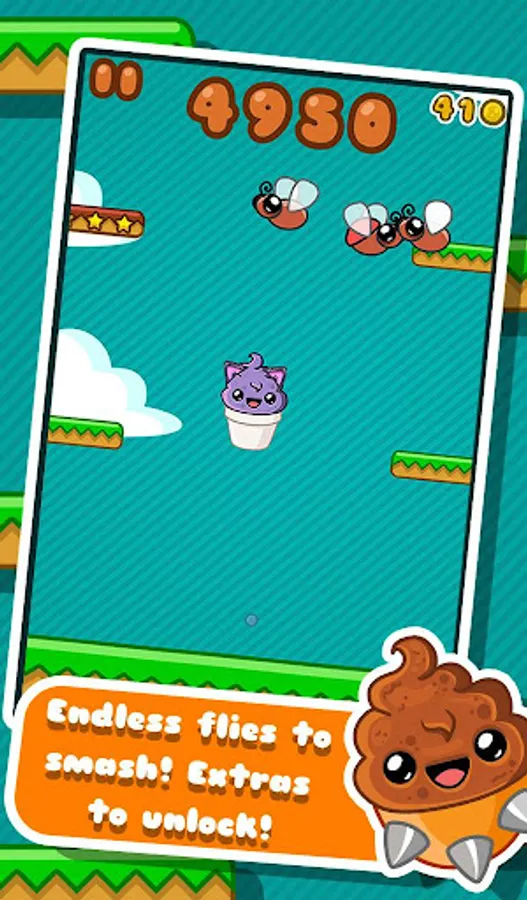 Tilt your phone to bounce around the testing arena and pound as many flies as you can with Happy Poo's new toy.
