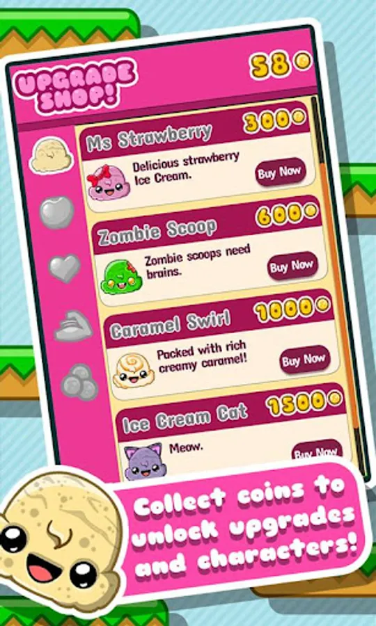 There are more ice cream characters now, you can collect them all by picking up the coins in the game, or you can use your coins to upgrade power ups!