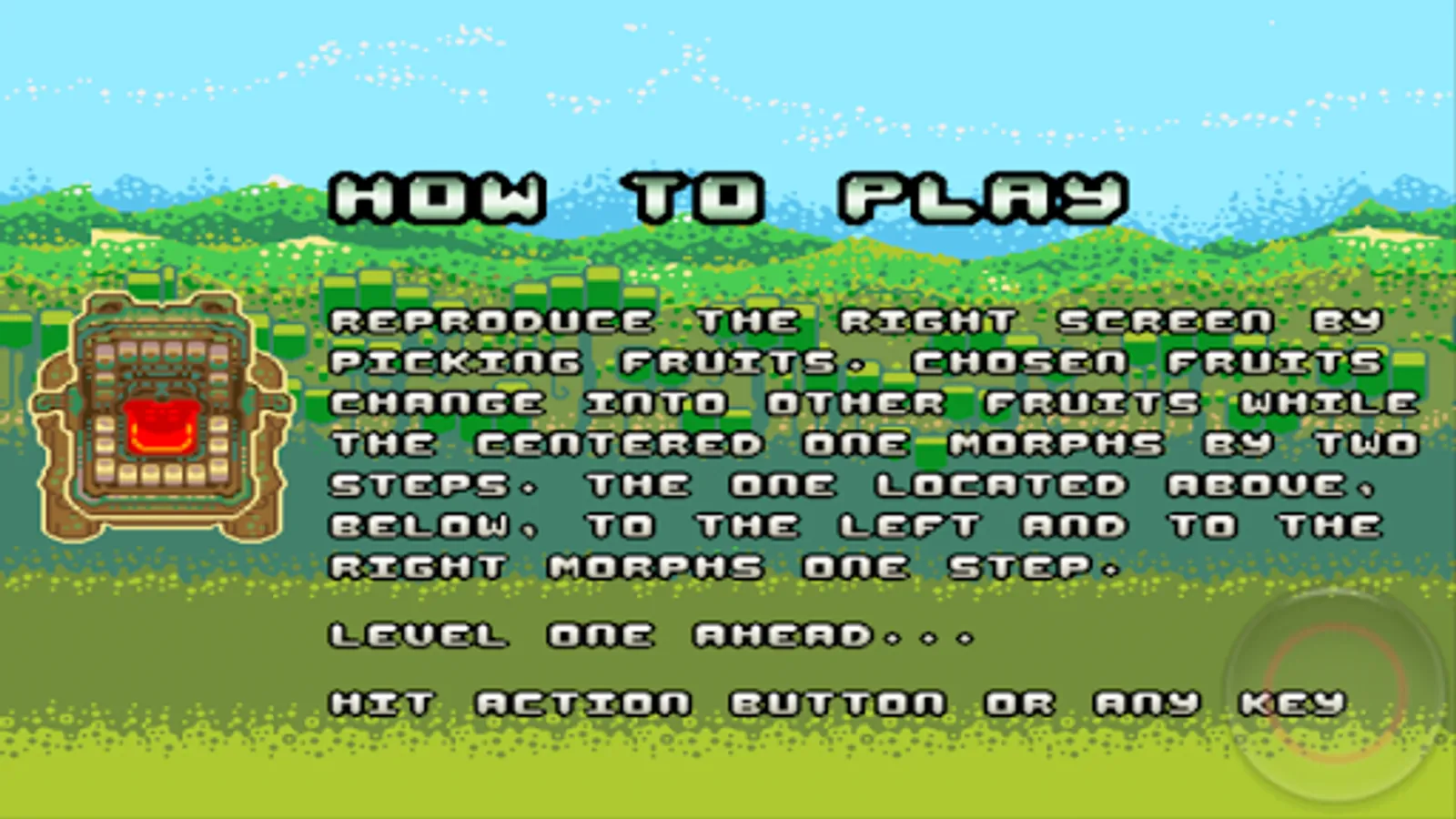 The game consists of two boards of fruits. The left field belongs to Sheran who needs to reproduce the right field 1:1 being able to proceed to the next level. Sounds easy?!