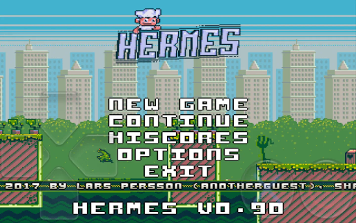 Hermes is an extraordinary Jump'n Run game covering bad taste humour. If you feel offended by crude and dirty humour you may run away now. The game also features pixel violence and promotes the consumption of meat. If you are a hardcore vegetarian, you might very much dislike the game or just have a good laugh.
