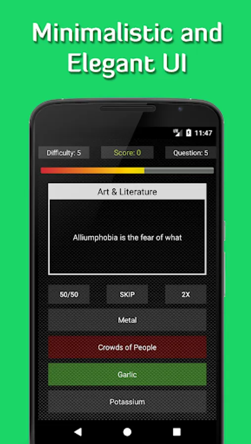 Unlike many other trivia games Quiz of Knowledge is playable offline anytime. Take it with you in the car, on the metro or play a quick game while you are waiting for the bus.