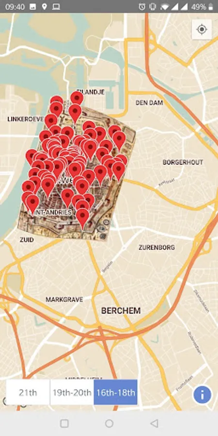 In this version, The Scheepers Map of 1880 and The Virgilius Bononiesis Map of 1565 are used to illustrate the appearance of the city of Antwerp( Belgium,Europe) throughout history. Over time new cities will follow and more worldwide historical content will be added. The app already offers over 500 photographs from the city of Antwerp and some photographs are colorized and can be seen in 3D with Anaglyph 3D goggles. The App is worldwide and can be downloaded from any location.