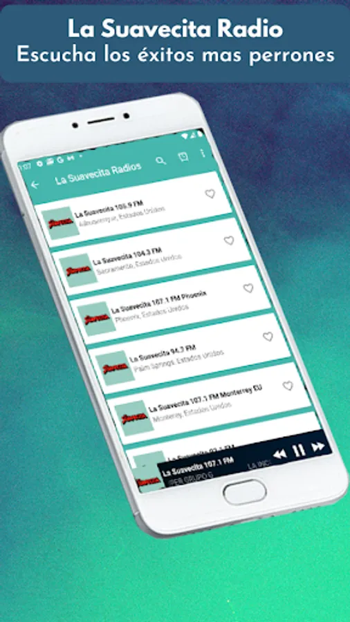 In addition to the station La suavecita 107.1 radios, it includes all the stations of the best fm, the law fm, uforia radio, kepadre radio, the race fm, radio la suavecita and many more