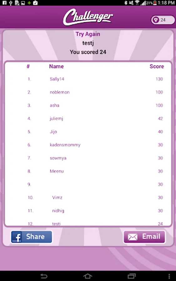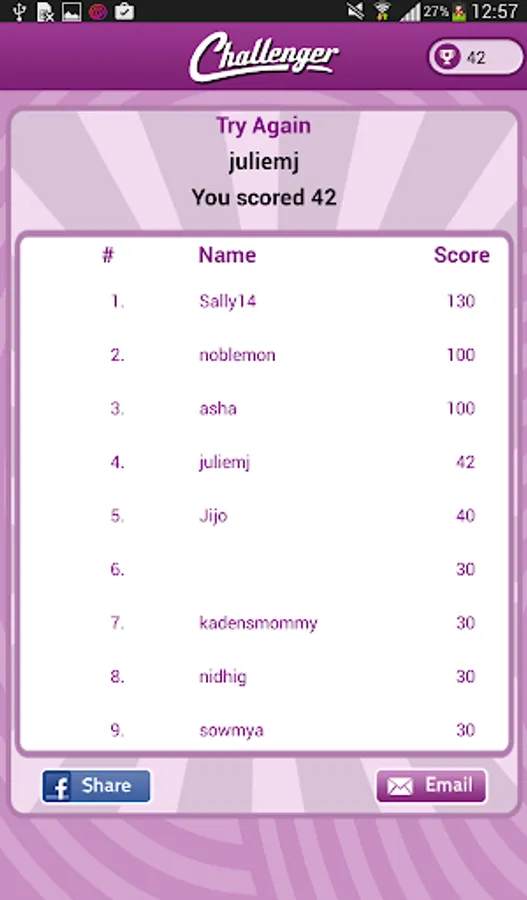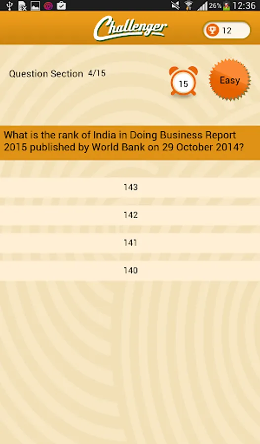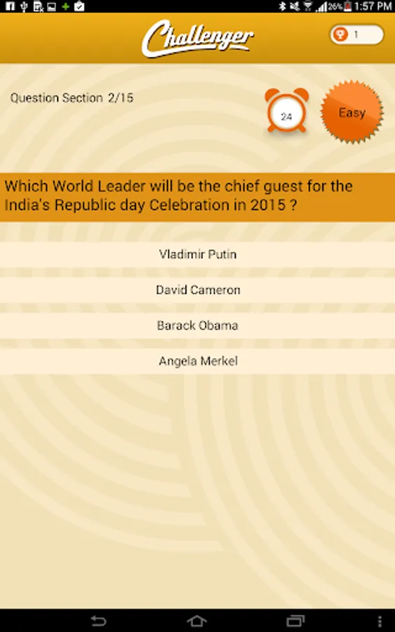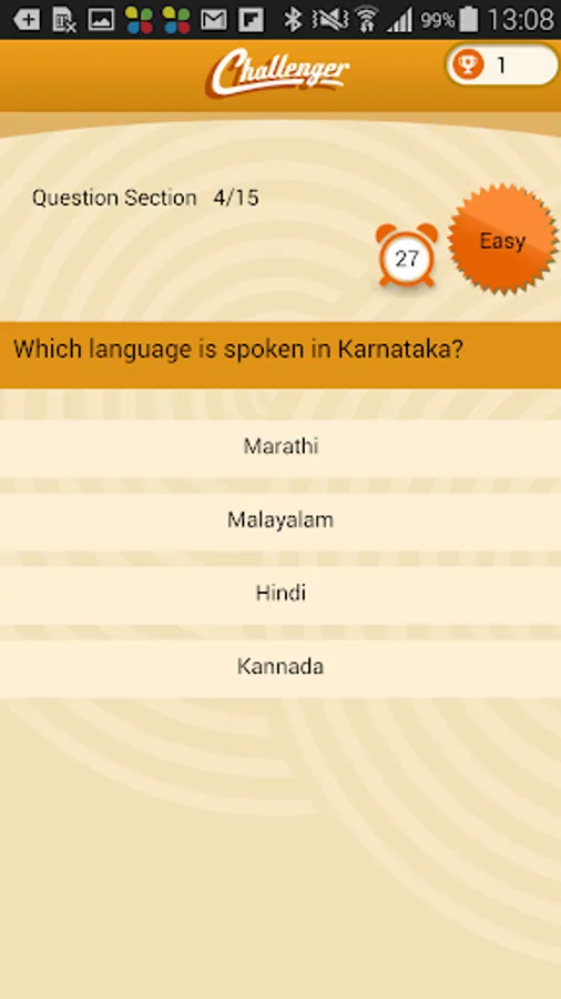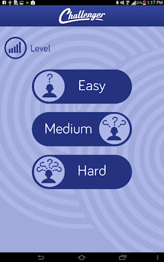 Challenger is an Android application for taking quiz based on different category such as general knowledge,technology, sports etc. You can select any category from the list and for each category there are three different levels easy, medium and hard.