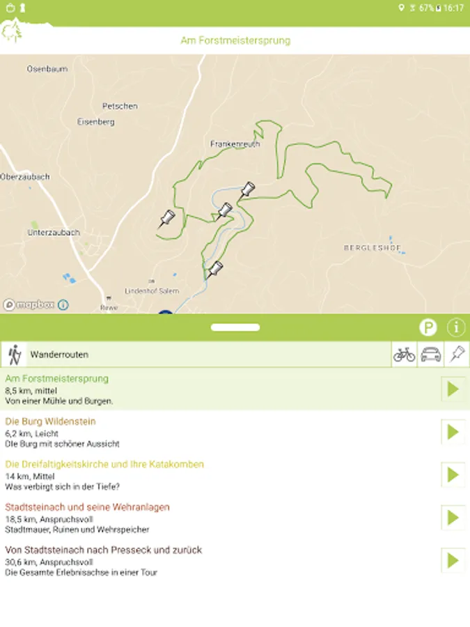 Stadtsteinach was the starting point for trade and travel along a medieval old road through the Steinach Valley. With the help of our "Guiding App" - Steinachtal adventure axis - hikers and cyclists can embark on a breathtaking journey. From the medieval town center of Stadtsteinach, including the remains of the town wall and the nostalgic museum of local history, to the center of the Presseck market with its beautiful Church of the Holy Trinity and its great early frescoes. Right next to it, a labyrinth of rock passages and rock vaults that were carved out of the Nagelfluhfels extends underground.