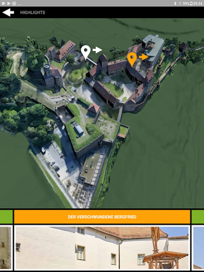 The treasure hunt invites the visitor to discover objects from ancient times at authentic sites in the castle grounds; Selected objects are visualized in three dimensions and can therefore be viewed from all sides in the app.