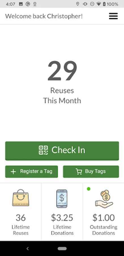 Every time you reuse you are giving back to a local non-profit in your community, while saving paper/plastic bags from being used in the environment. With the Reuse 2 Give App, you can easily track your donation history, paper/plastic bags saved and the overall impact of the program as a whole.