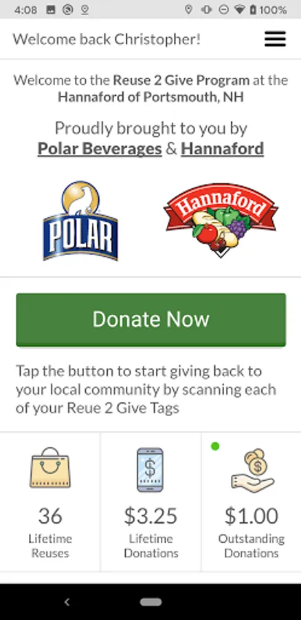 3. Visit a participating supermarket location & scan the Reuse 2 Give Tag upon arrival