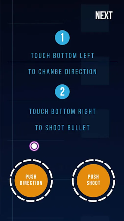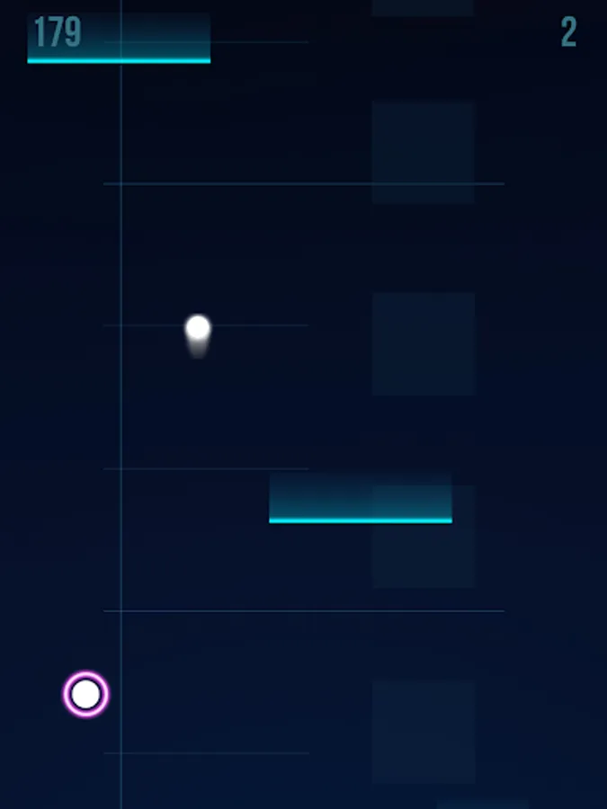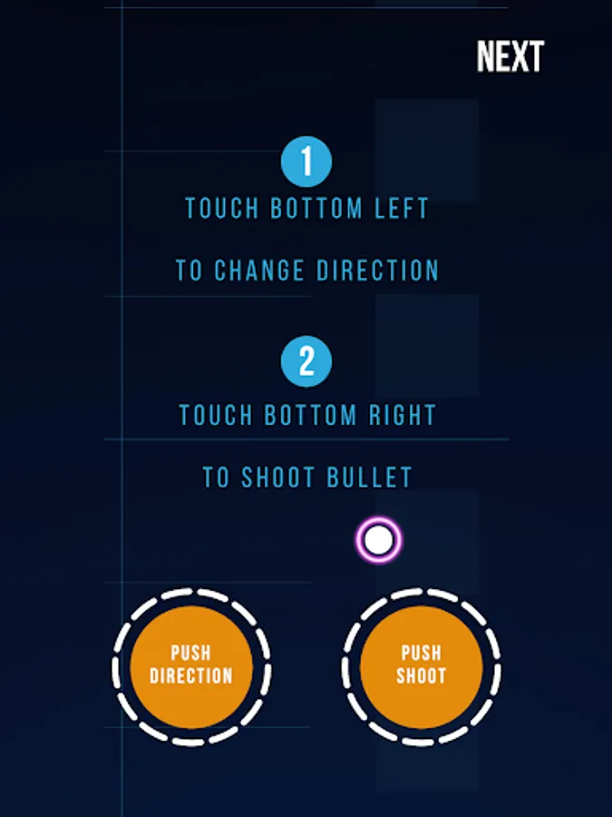 Your object is always moving from side to side, however, you can change its direction by simply touching anywhere at the bottom left. While moving, avoid rectangular objects and collect white bullets. You can collect up to 3 bullets at a time, so use them wisely. If you have less than 3 bullets, new bullets will become available again for you to catch. Calculate the angle of your object's movement in advance and change its direction promptly to avoid crushing into obstacles.