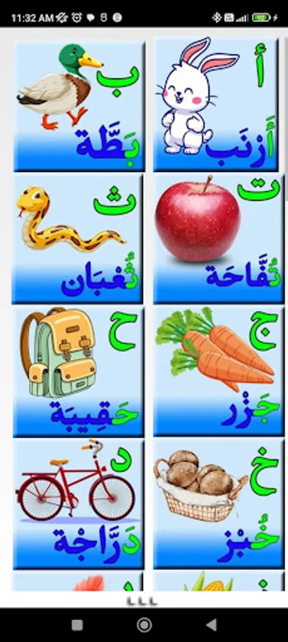 The "Learn Arabic Phonics with Visuals" app is a fantastic educational tool designed to enhance Arabic language skills for both children and adults. This interactive app features a wide range of colorful and captivating visuals, each corresponding to a specific Arabic letter. By tapping on the visuals, users can hear the phonetic sound of the letter as well as the associated word, facilitating proper pronunciation and vocabulary development.