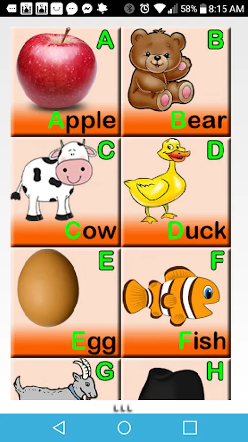 Easy enough toddlers will learn English Phonics with sound and colorful images for each items all are in alphabetical orders.