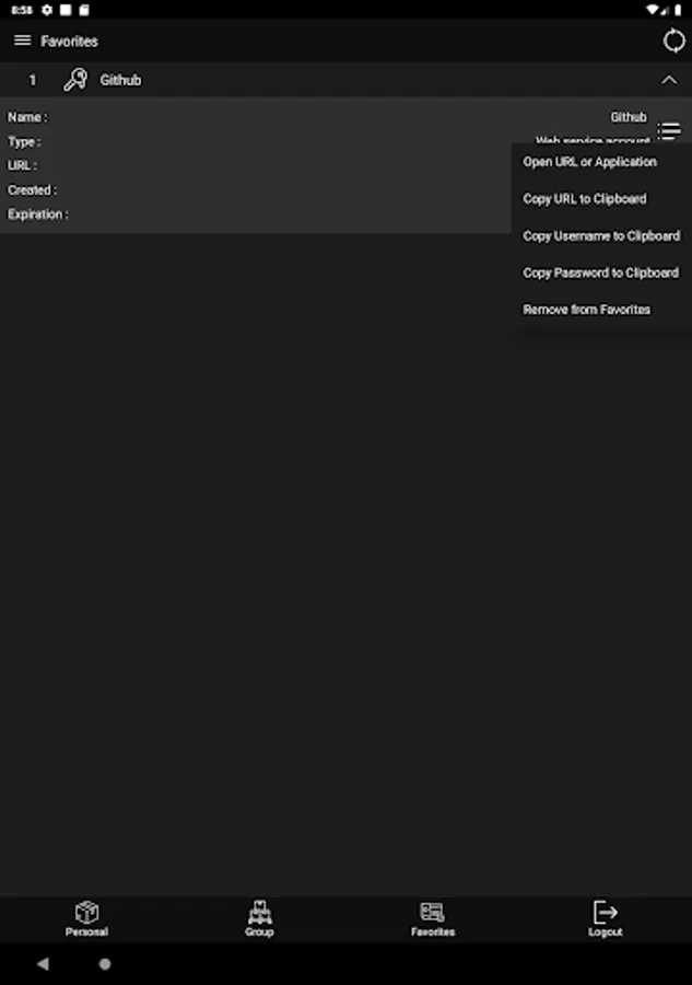 This application uses Accessibility API to provide automatic password saving and filling in various apps, the saved passwords are encrypted on-device before being sent to the server for saving in the user's account.