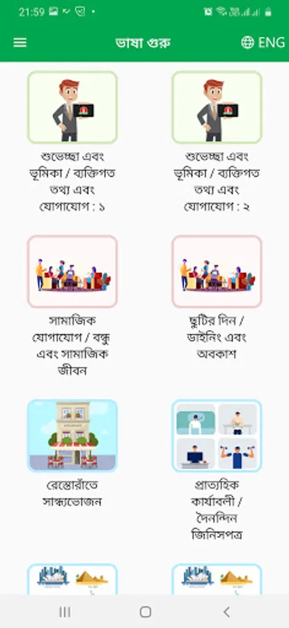 VashaGuru Mobile App is a mobile App develop in Android platform on 9 (nine) languages. It is a learning app including all the basic features that are essential for communicating in foreign language. Such features include, but are not limited to, the following: