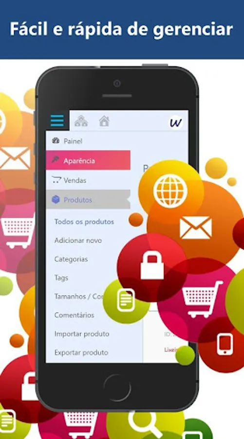 • Synchronize your products with external websites and sell on Google Shopping, Instagram, Facebook, Buscapé.