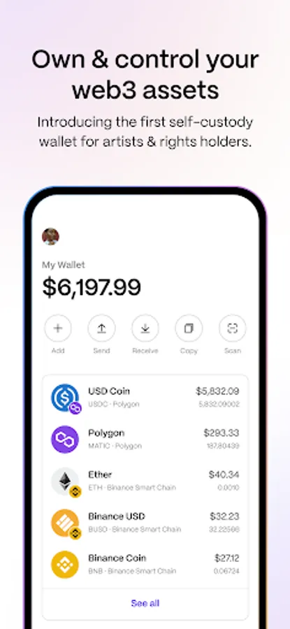 Revelator Wallet is a simple and secure way to receive music royalties on-chain, manage tokens, collect NFTs and explore the new world of Web3.