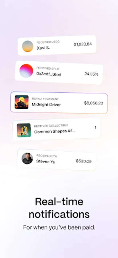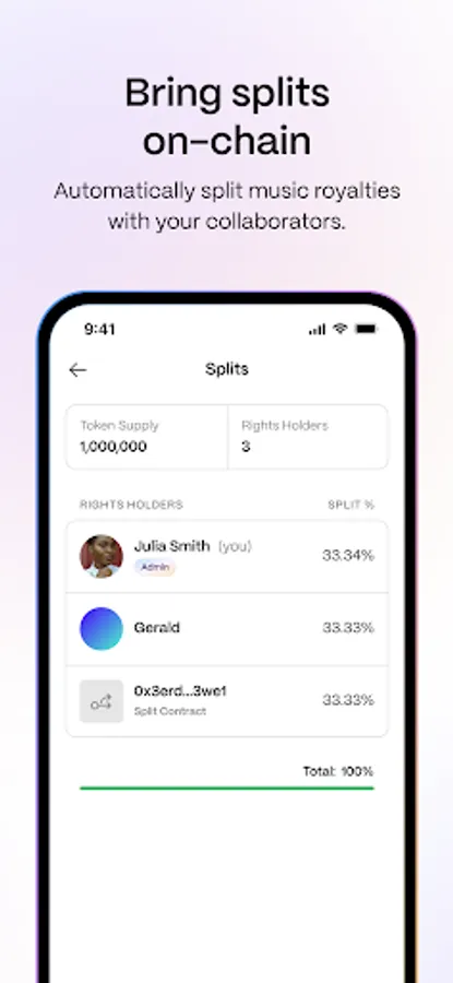 → Create split contracts for splitting payments from Royalty Tokens, NFT sales and other web3 sources between multiple parties
