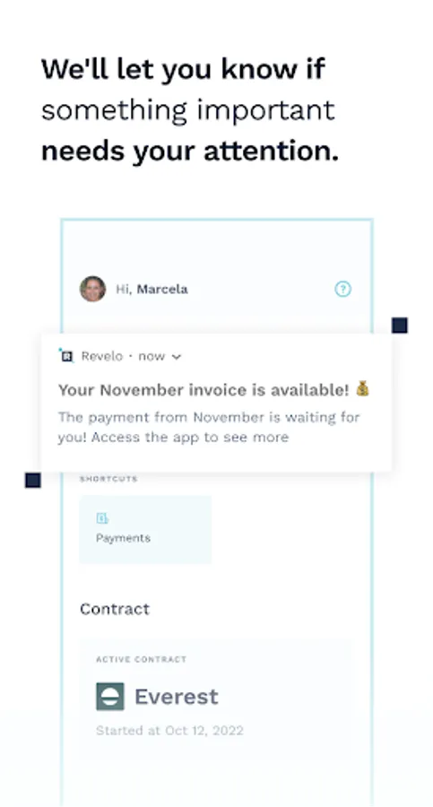The Revelo Go app was designed to complement your Revelo experience, giving a snapshot with all information you need right in your pocket, so you can manage your professional career and finances on the go.