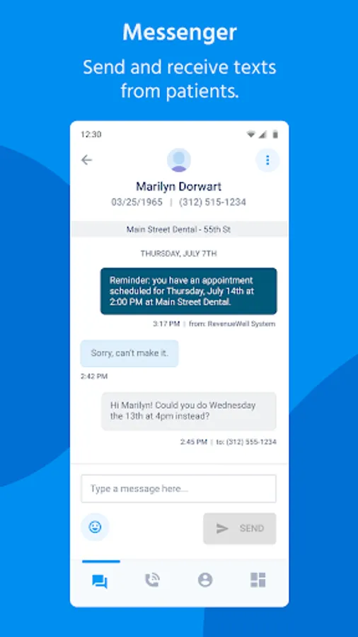 - Send and receive text messages with their patients