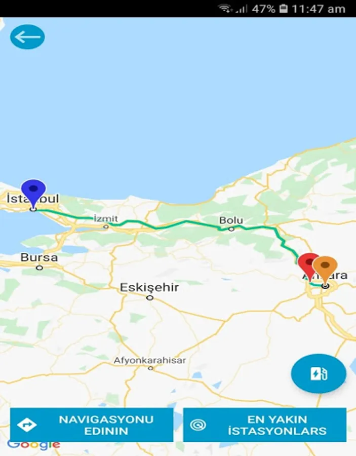 Elektrikli Otomobilinle Şarj İstasyonlarını Bul ve Şarj İstasyonu konumu ve Elektrikli otomobil Menziline göre Elektrikli ulaşım odaklı Seyahatini Planla