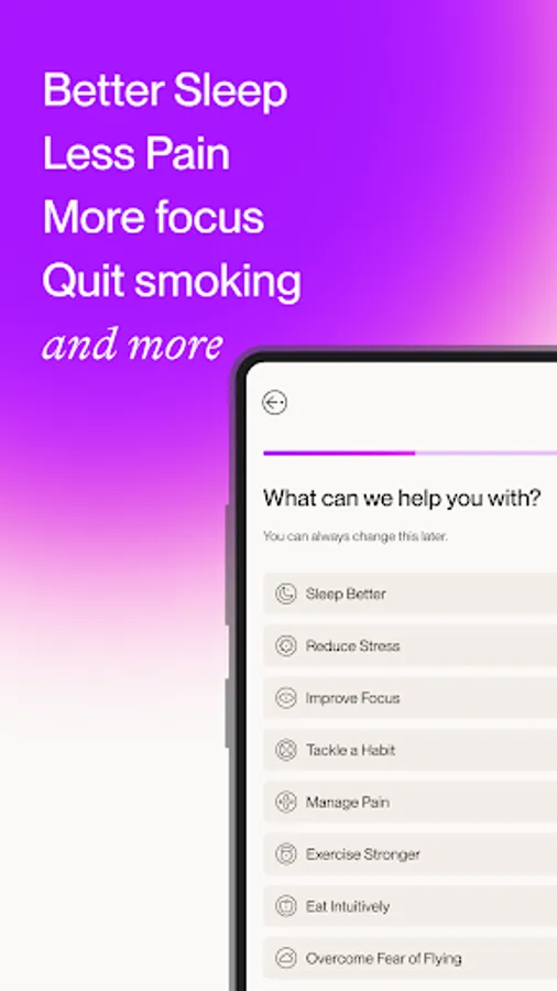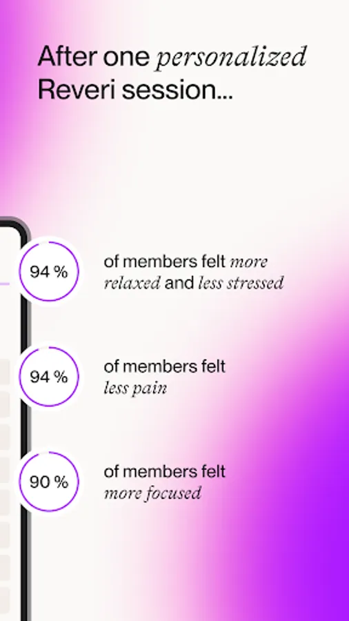 Use your mind to better control your body. Reveri's focused self-hypnosis sessions cover a range of challenges like insomnia, stress, focus, pain perception, eating habits, and quitting smoking.