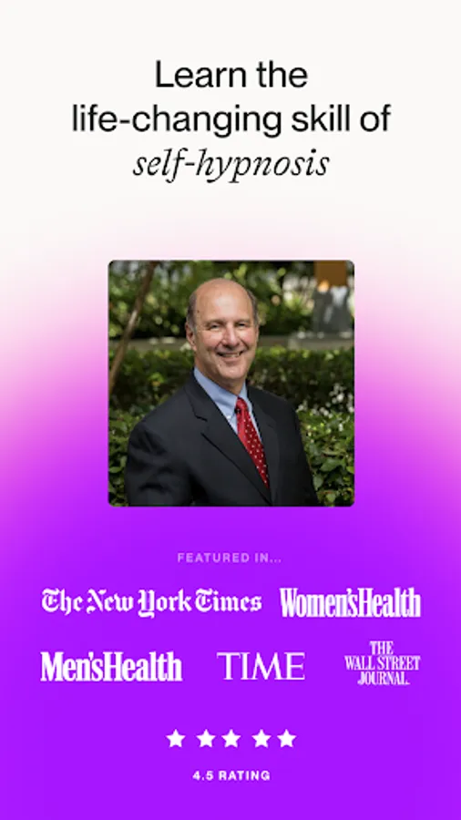 Self-hypnosis sessions for quitting smoking, eating well, managing pain, relieving stress, improving sleep, and enhancing focus.
