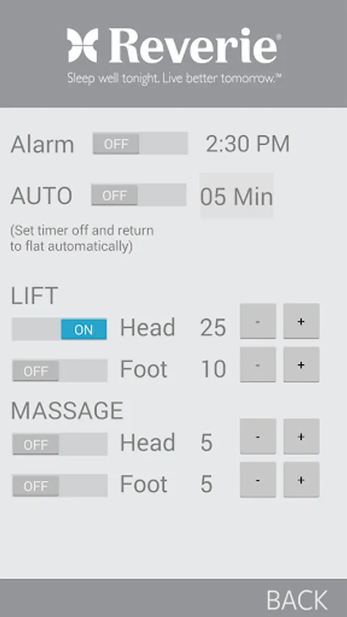 The Reverie Remote application allows you to control your Reverie adjustable bed when the bed is properly connected to your mobile module available for purchase on www.reverie.com. Our unique technology also allows you to control the bed via Bluetooth, so you can surf the web and control your bed without any hassle. Simple to set up and easy to use!