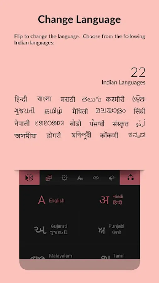 (Full list of supported 22 official Indian languages + English given above)