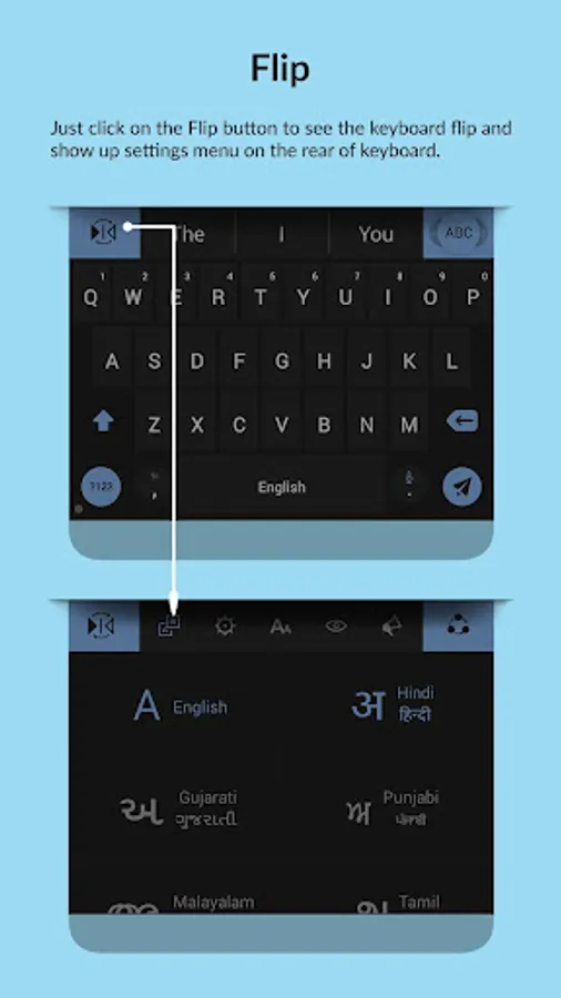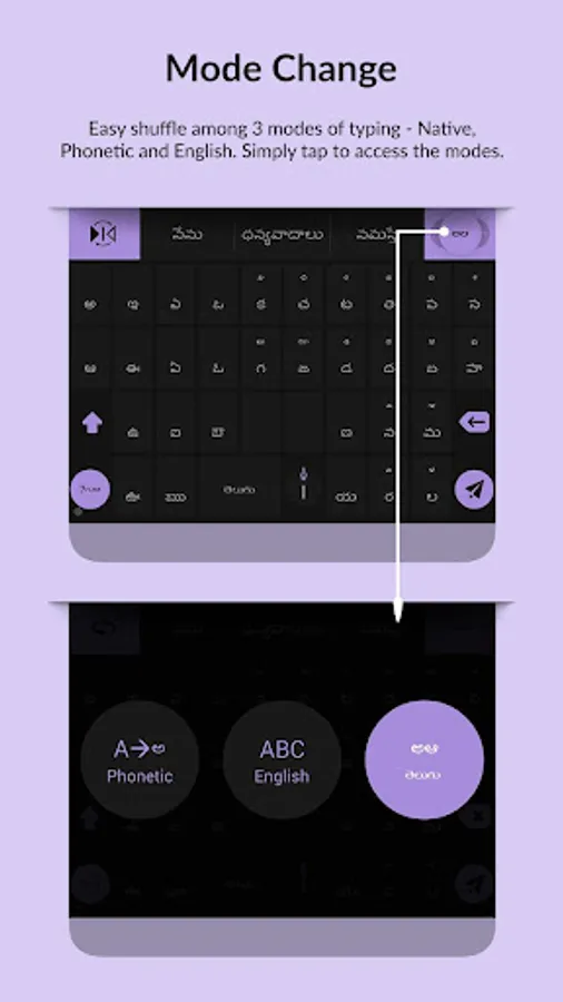 QWERTY format keypad that allows you to type in English script before using phonetic transliteration to convert words into an Indic script of your choice.