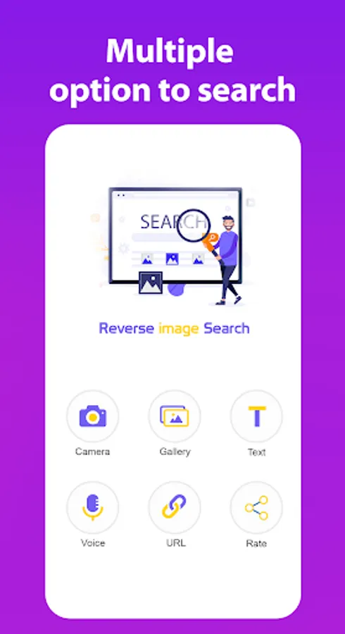 Search image engine: reverse photo search engine allows you to capture photo through camera for directly do image search. Also pick the photos through your gallery and start doing image search easily by this reverse image search : photo search app.