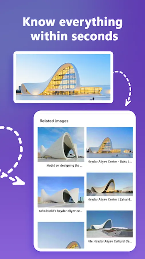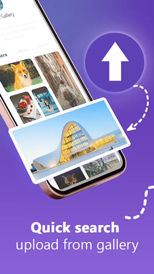 Having a lot of photos in your phone gallery? Having unknows photos in your cell phone? Do you want to explore those photos? Simply click on gallery button and pick a photo to do image search and explore many pictures from that one picture. Having pictures of some beautiful places? It mostly happens that, we have some photos of ancient places and want to visit those places but we don’t know where these places are located, so you can do images search of that photo and get related images and plan your tours.