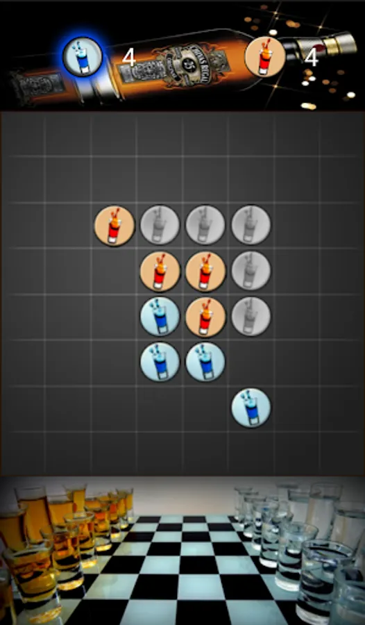 Reversi Shots is a familiar Reversi game (aka Othello) with alcohol concept.