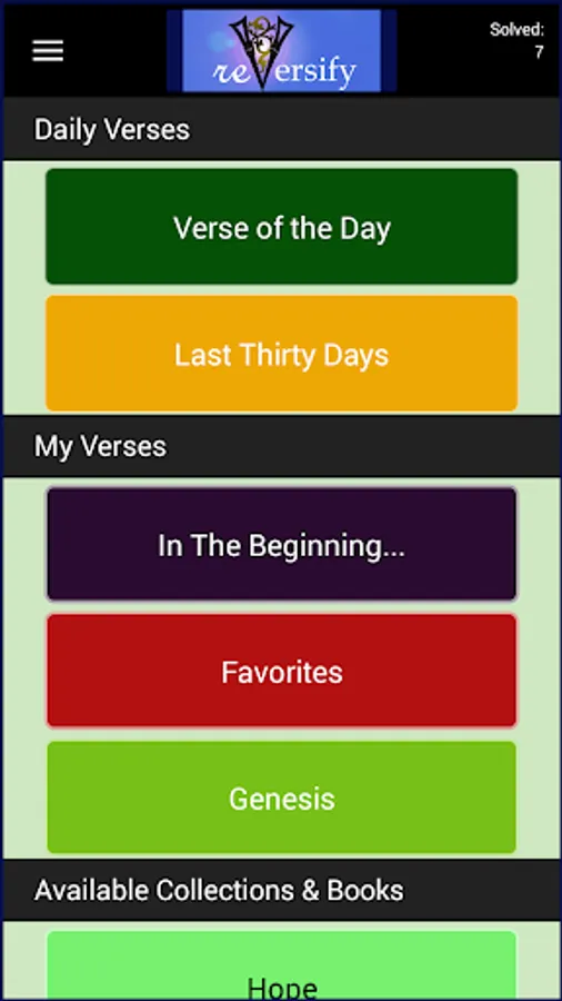 reVersify is a fun way to interact with Bible Verses on a daily basis...seeing the words come back together is a special thrill! Get a Verse of the Day every morning; Verse Collections and individual Books of the Bible are available, and the latter can be read in their entirety within the app.
