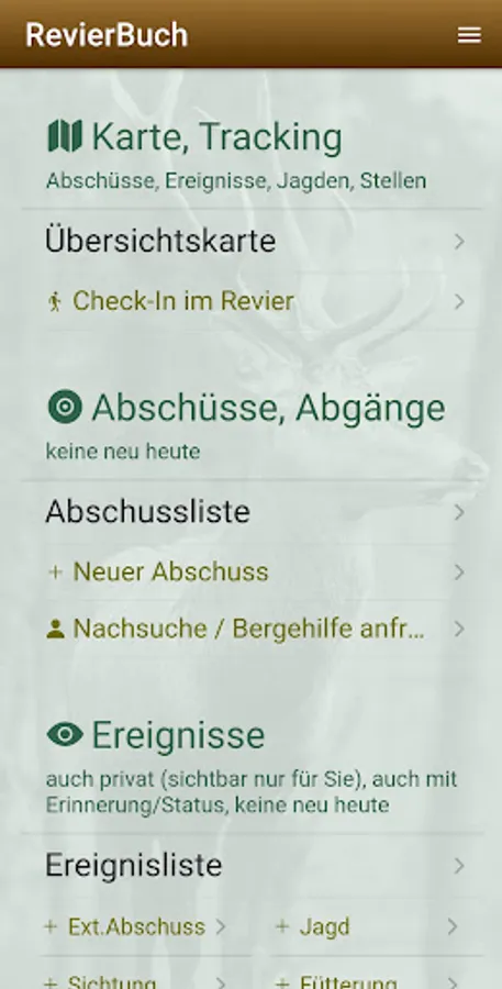 The web software for easy management of your hunting ground, suitable for large hunting grounds, hunting parties and private hunt owners, now including a hunting diary function.