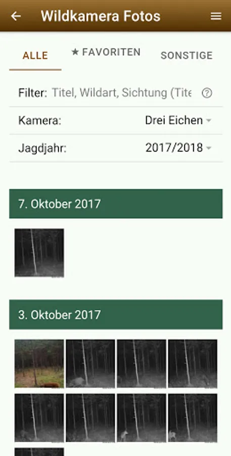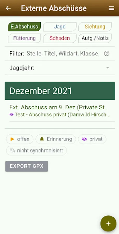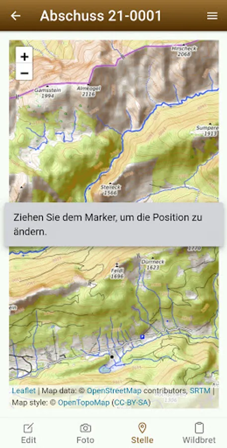 An overview map for all entries, with simple filters and different map sources (topographic maps, aerial photos) is available as well as the possibility to create your own private entries (external kills, sightings, feedings, notes, etc.) that are only visible to you. If required, also with a reminder via app/email/SMS at any time.