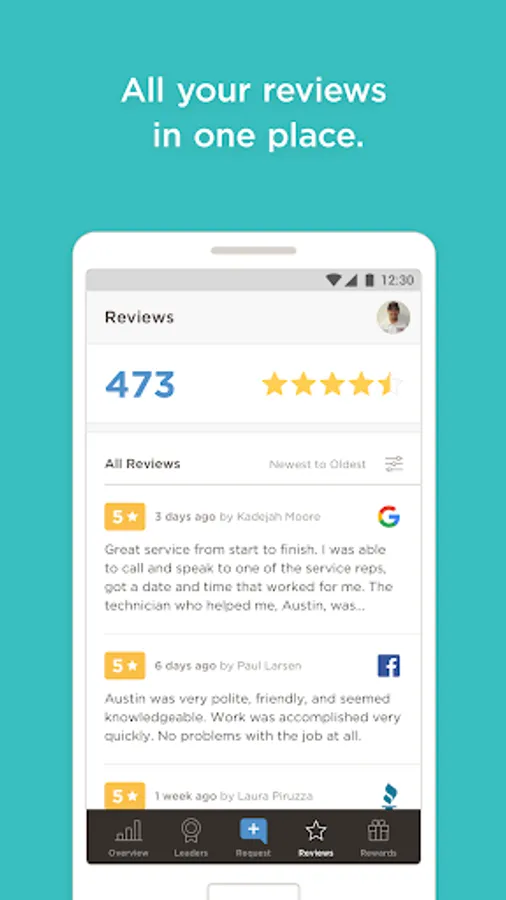 Use the ReviewBuzz app and you’ll easily get more reviews for your company - and more rewards for yourself. Quickly send review requests when you finish a job. Then track your customer feedback, your points, your rewards and your online reputation anywhere at any time. It’s fast, easy and powerful. Download it today.